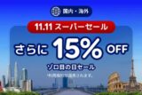 いまなら2025年11月11日「ゾロ目の日」に合わせた秋のキャンペーンとして、アゴダでおトクにホテル予約ができる11.11 スーパーセール 秋旅ホテル15%OFF